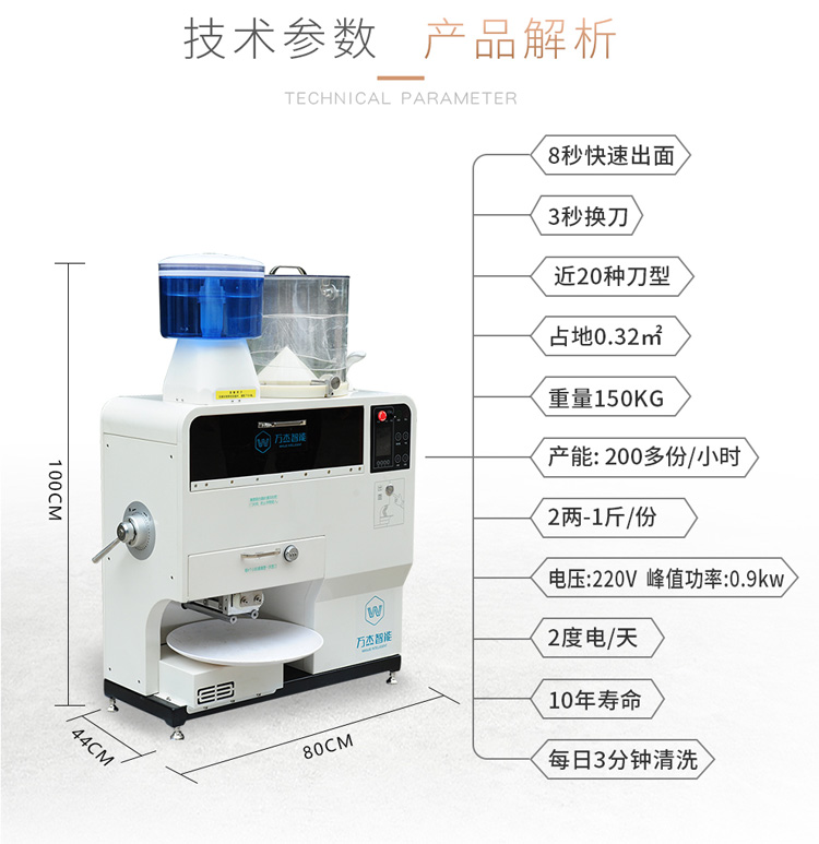- 機(jī)器產(chǎn)能: 80~100斤鮮面條